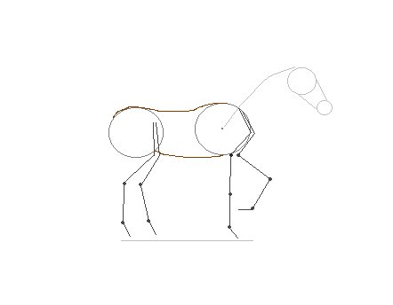 Okay! Now lets start with fleshing out the horse. The flesh wil be drawn in brown. Firest connect the two circles. Remember that the belly goes slightly upwards.