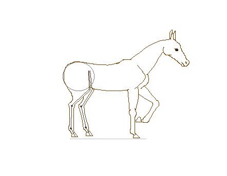Erase the grey and black lines on the fore legs and draw in the flesh on the hind legs. Join the hindquarters (hip) to the knee of each leg.
