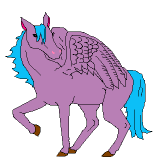 see a strangely coloured pegasus - she has a pink